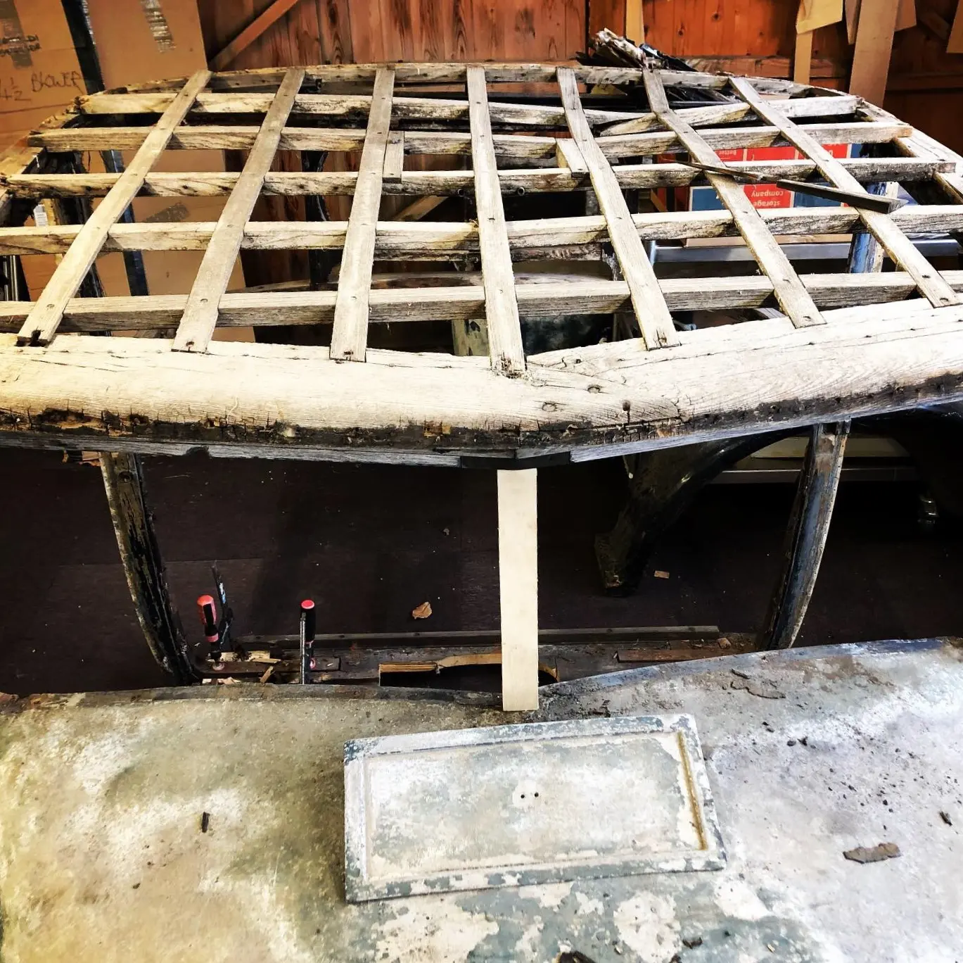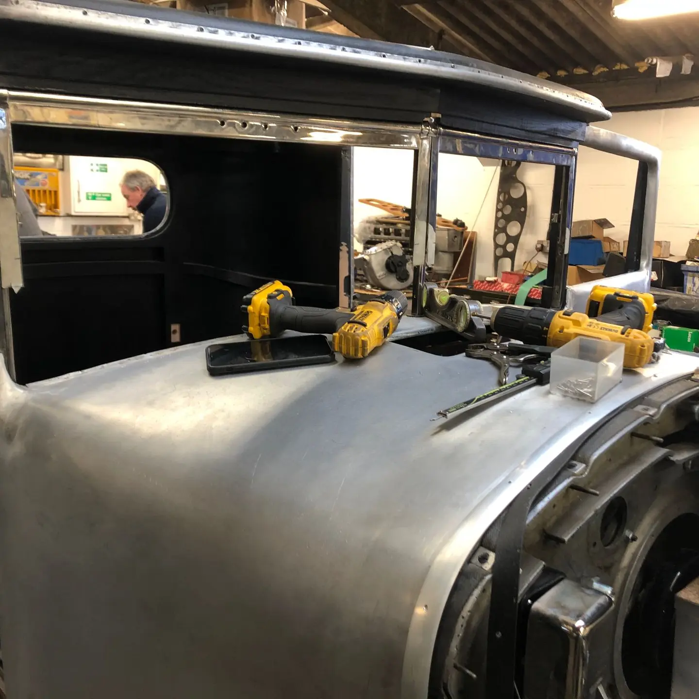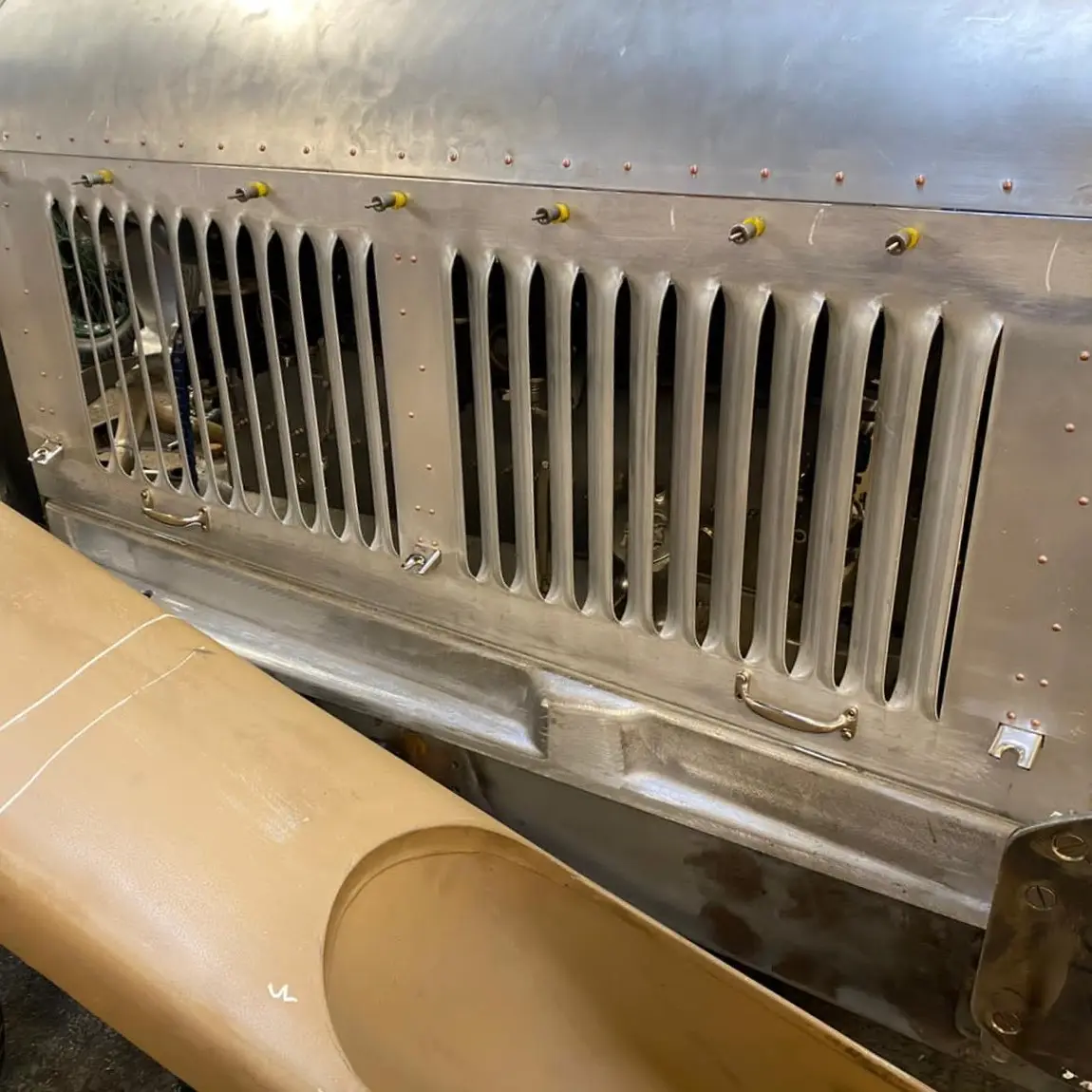 The body’s restoration was carried out by three exceptional craftsmen. Robert Dean rebuilt the ash frame, ensuring strength and authenticity. Gary Fowler created the beautifully formed aluminium panels that define the car’s flowing lines. Finally, Graham Moss completed the work by expertly trimming the roof, bringing the entire structure together with precision and period-correct detail.