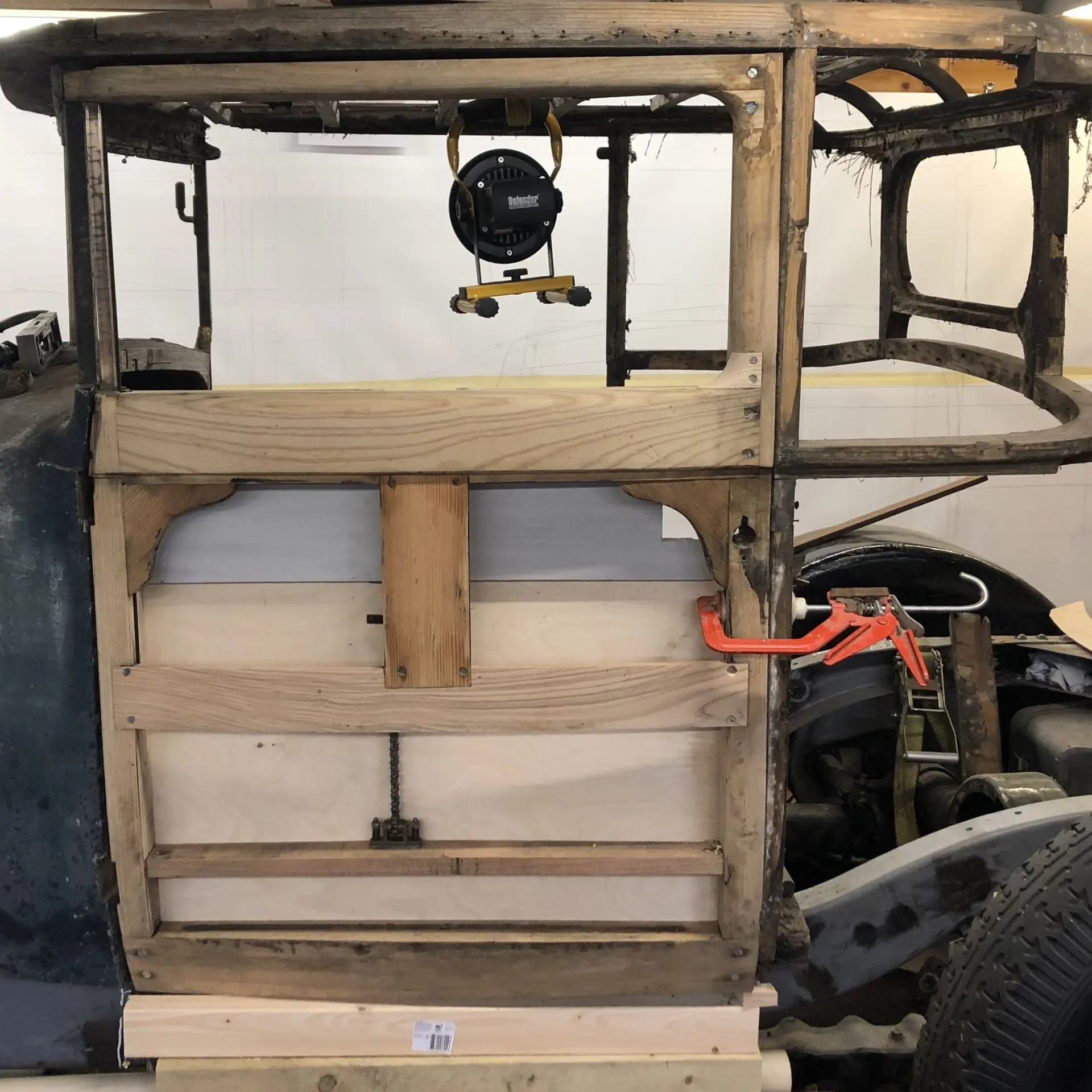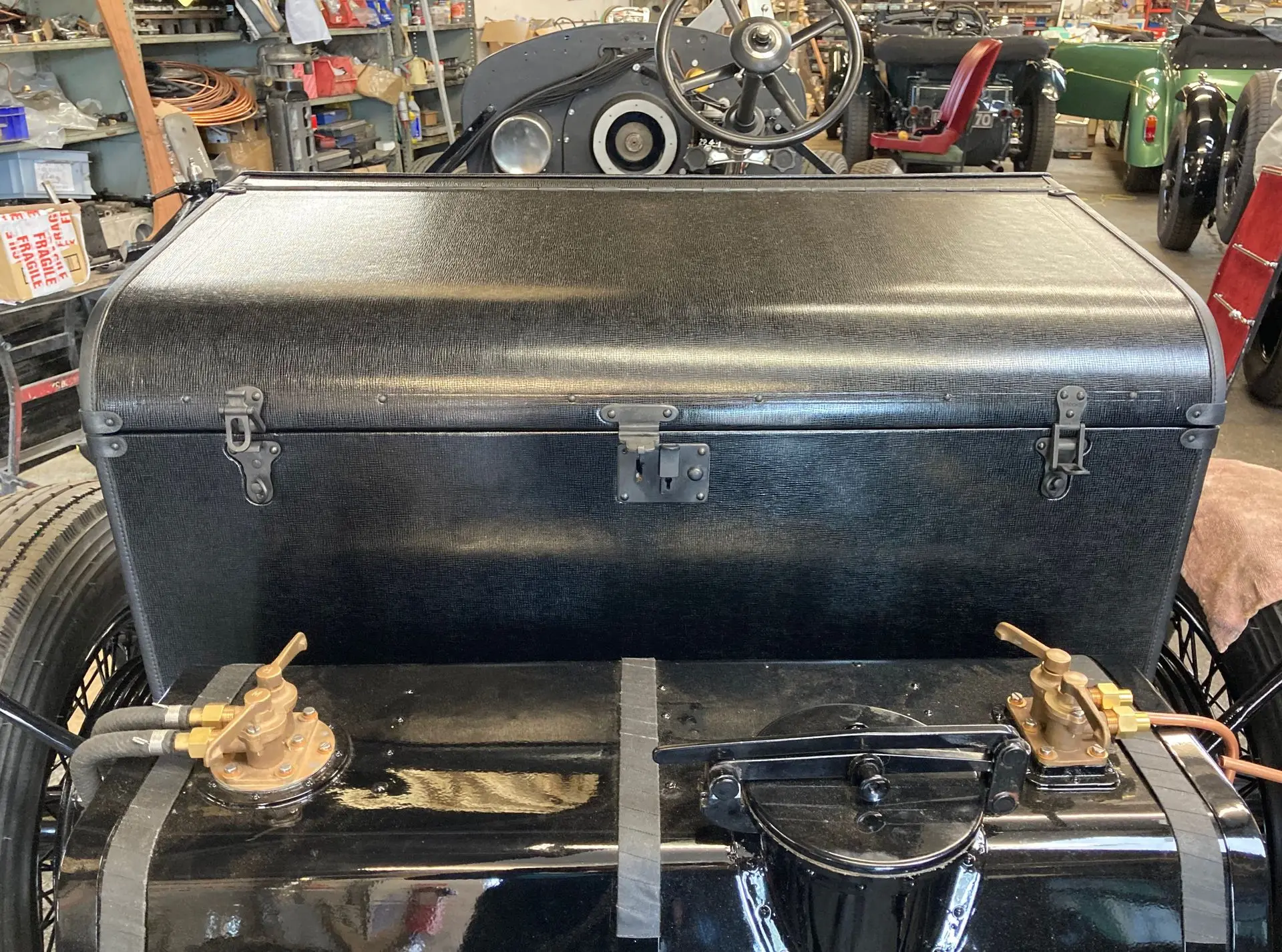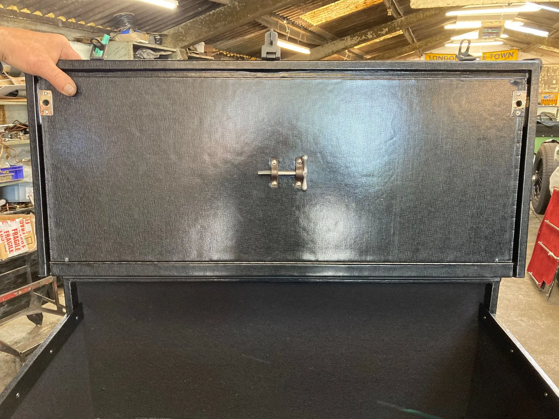 To finish the trunk, Graham covered it in Rexine. I have never totalled the cost of the trunk, although I suspect it would comfortably buy a new car. In my view, it was worth every penny. The rear of the car had to look right, and nothing less would do.