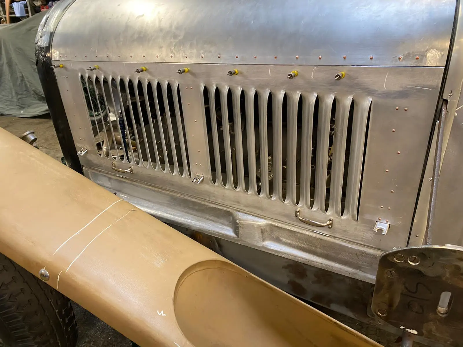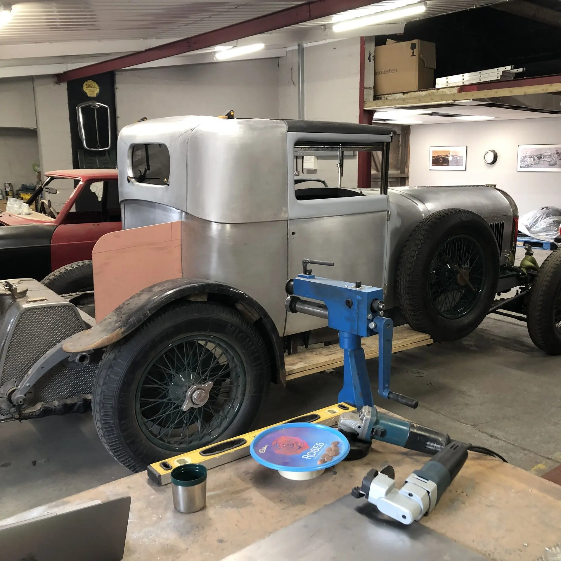 Together, we reviewed the car from front to rear, carefully following the flow lines from the radiator shell through to the rear lights. The aim was to create a car that could plausibly have been designed in the 1920s, using the Harrison two-door coupe as the foundation but without the boat-tail, and drawing inspiration from contemporary Le Mans touring bodies.