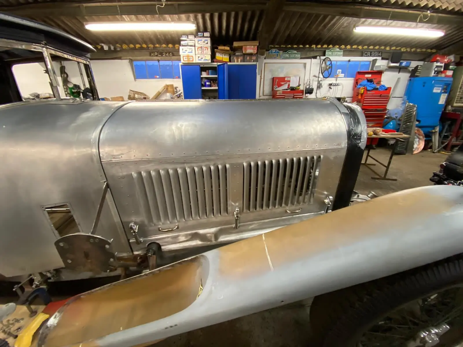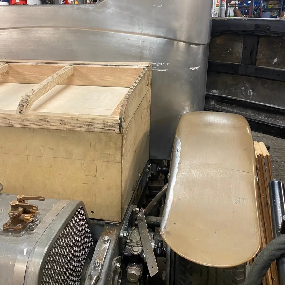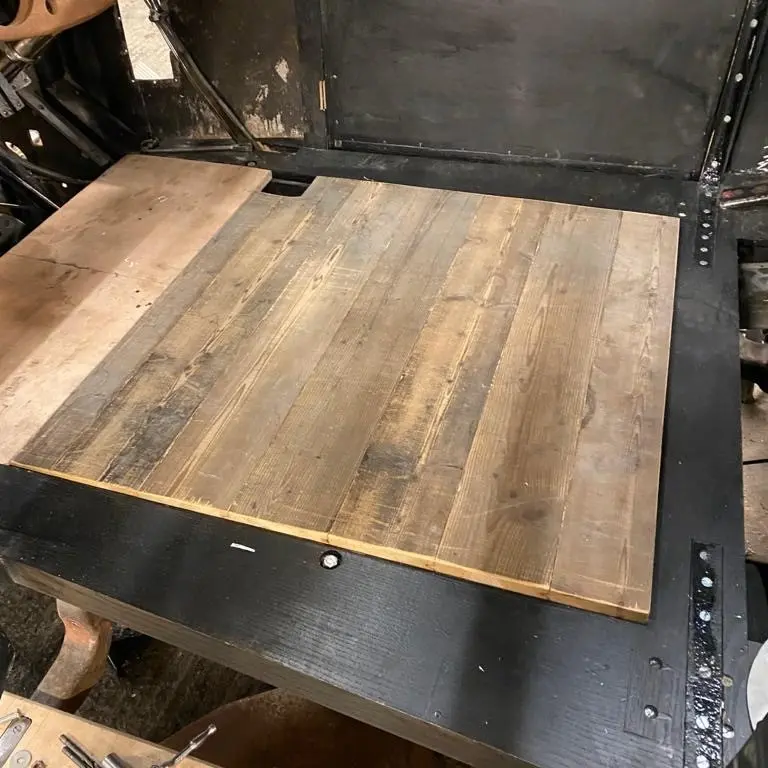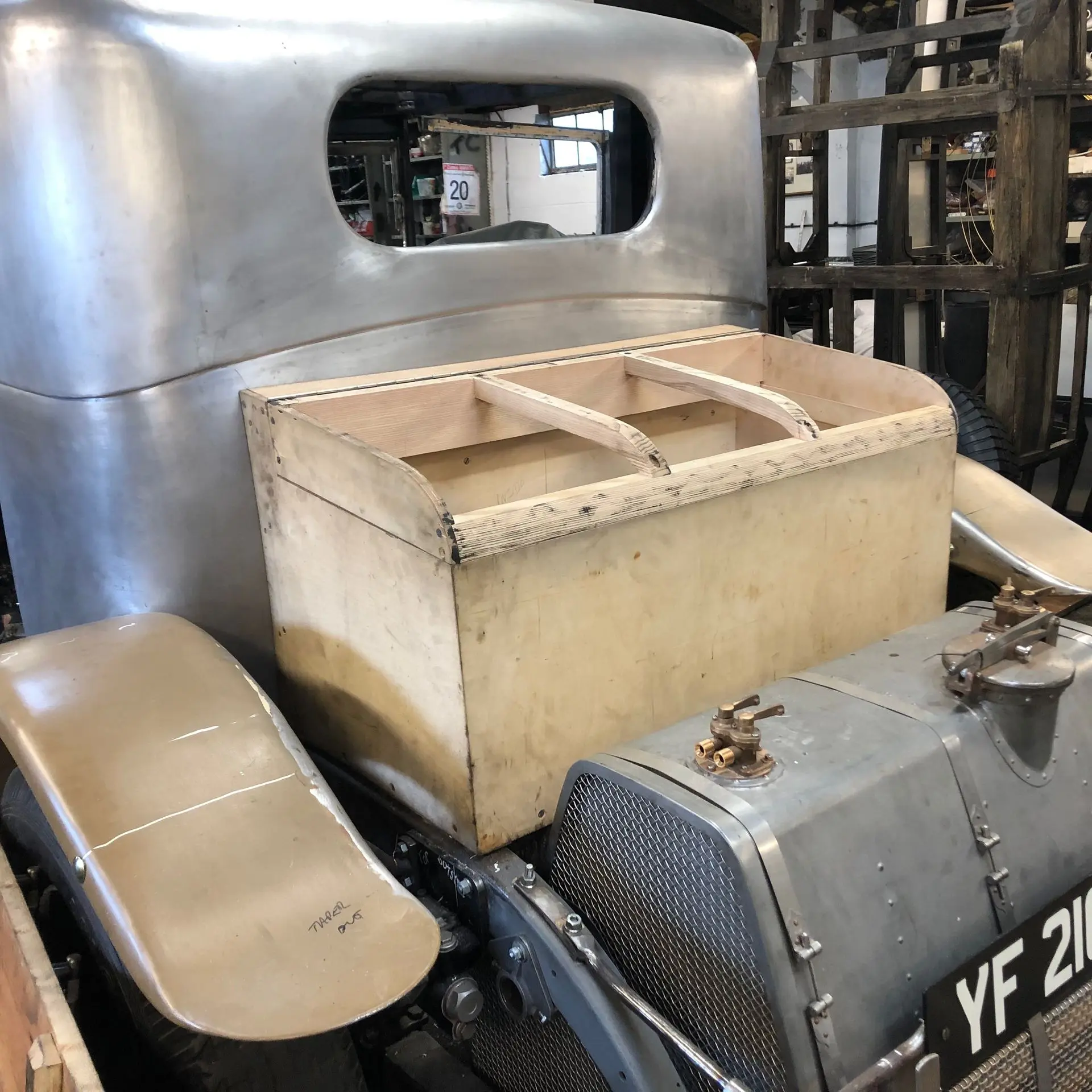During reassembly, David Ayre fabricated a new floor using high-quality plywood. A few weeks earlier, while visiting William Medcalfe’s showroom, I had seen an exceptionally original 4.5-litre Bentley. When the carpet was lifted, the car still retained its original numbered floor planks and fittings. We were both surprised that they had survived intact.