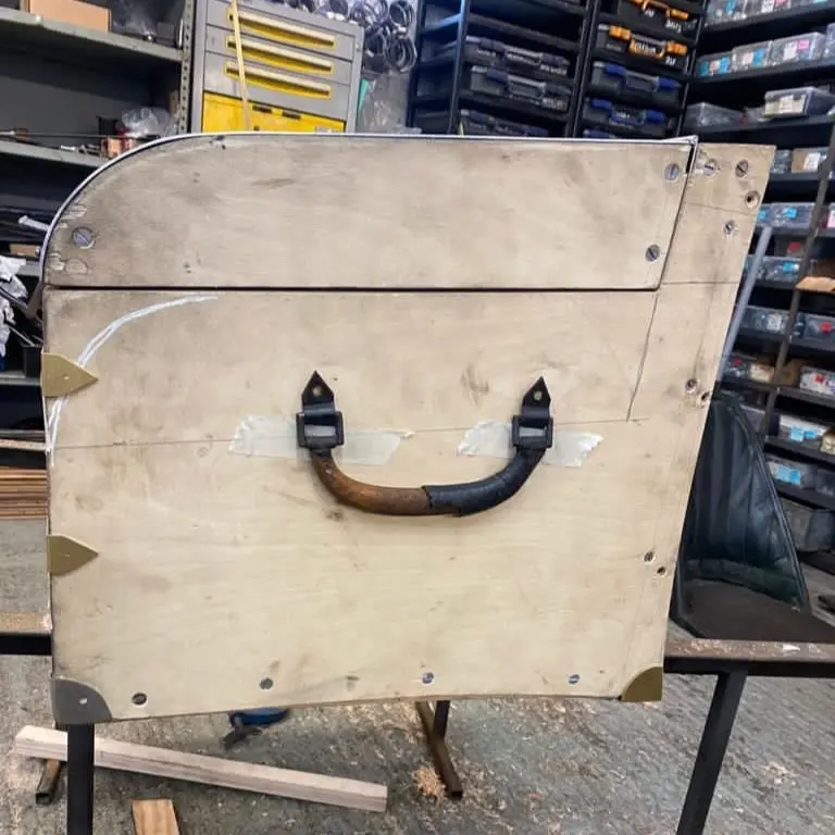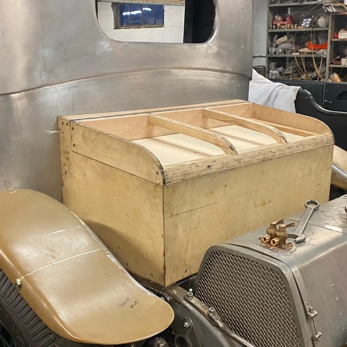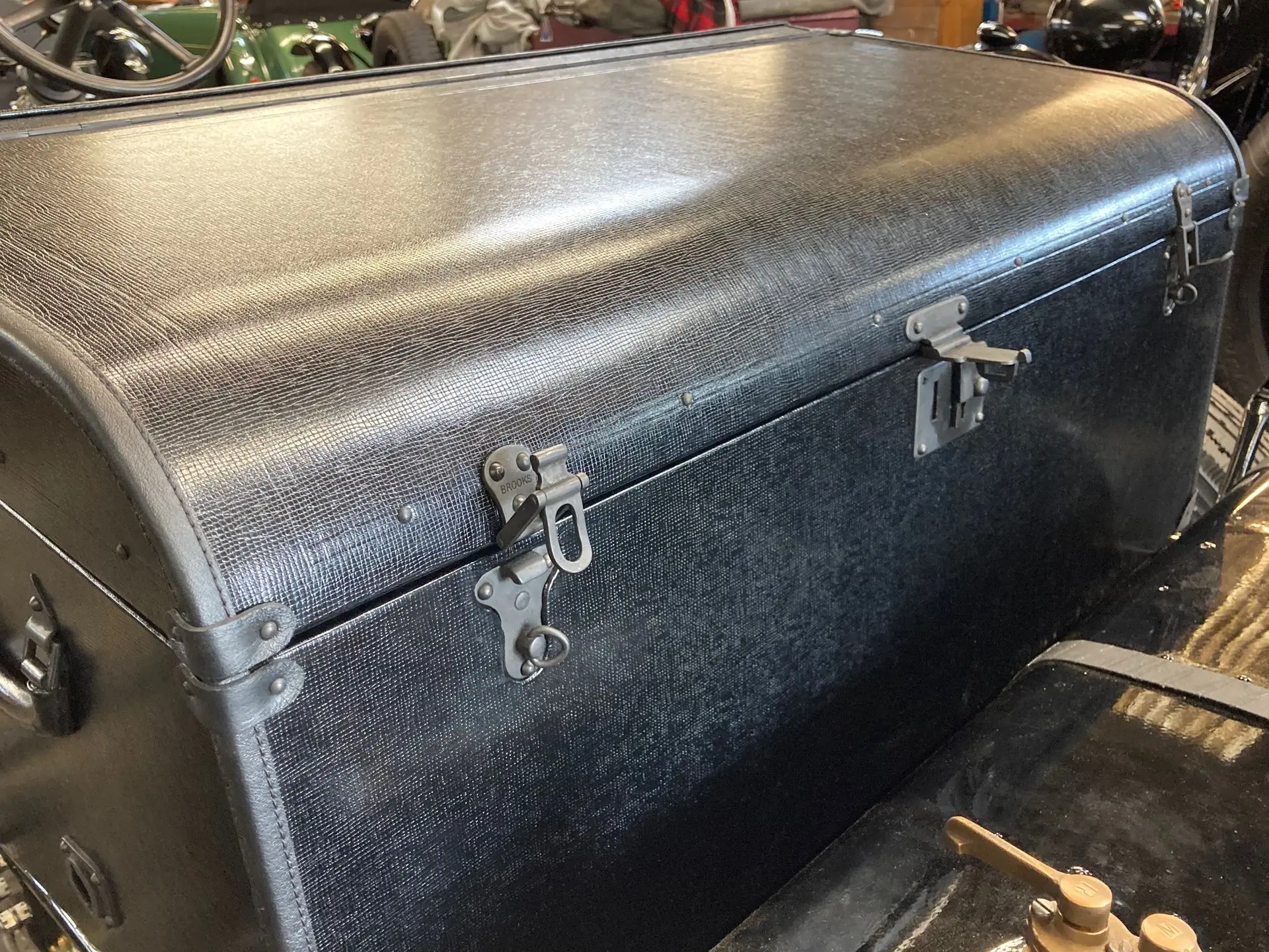 Trunks by Brooks were used by many of the most prestigious marques of the 1920s and 1930s, and everything about their design felt appropriate for this car. I managed to acquire an original Brooks trunk that was close to scrap, but crucially retained its original branding, metal handles, locks and catches. These components were carefully restored and reused on our newly made trunk.