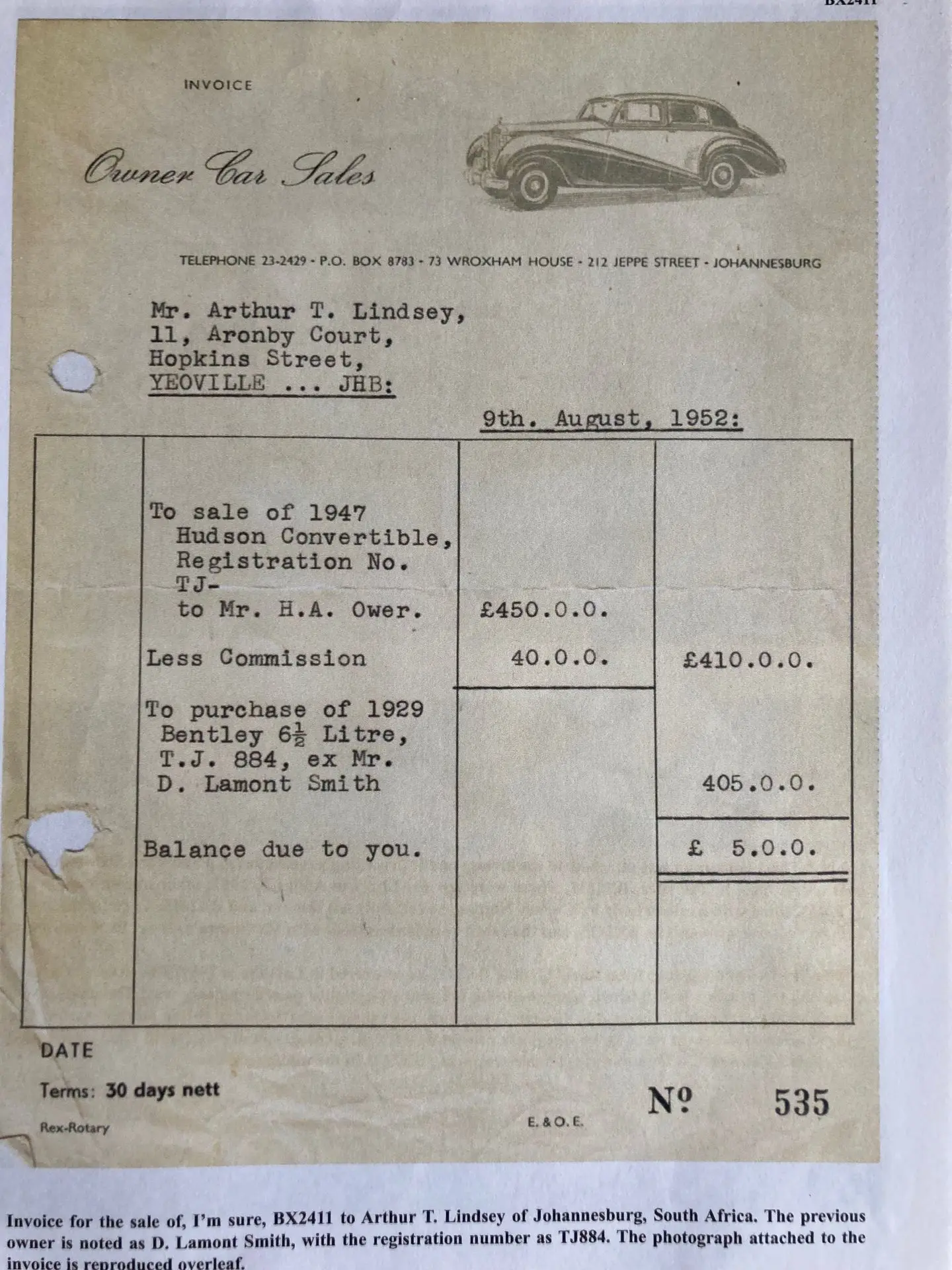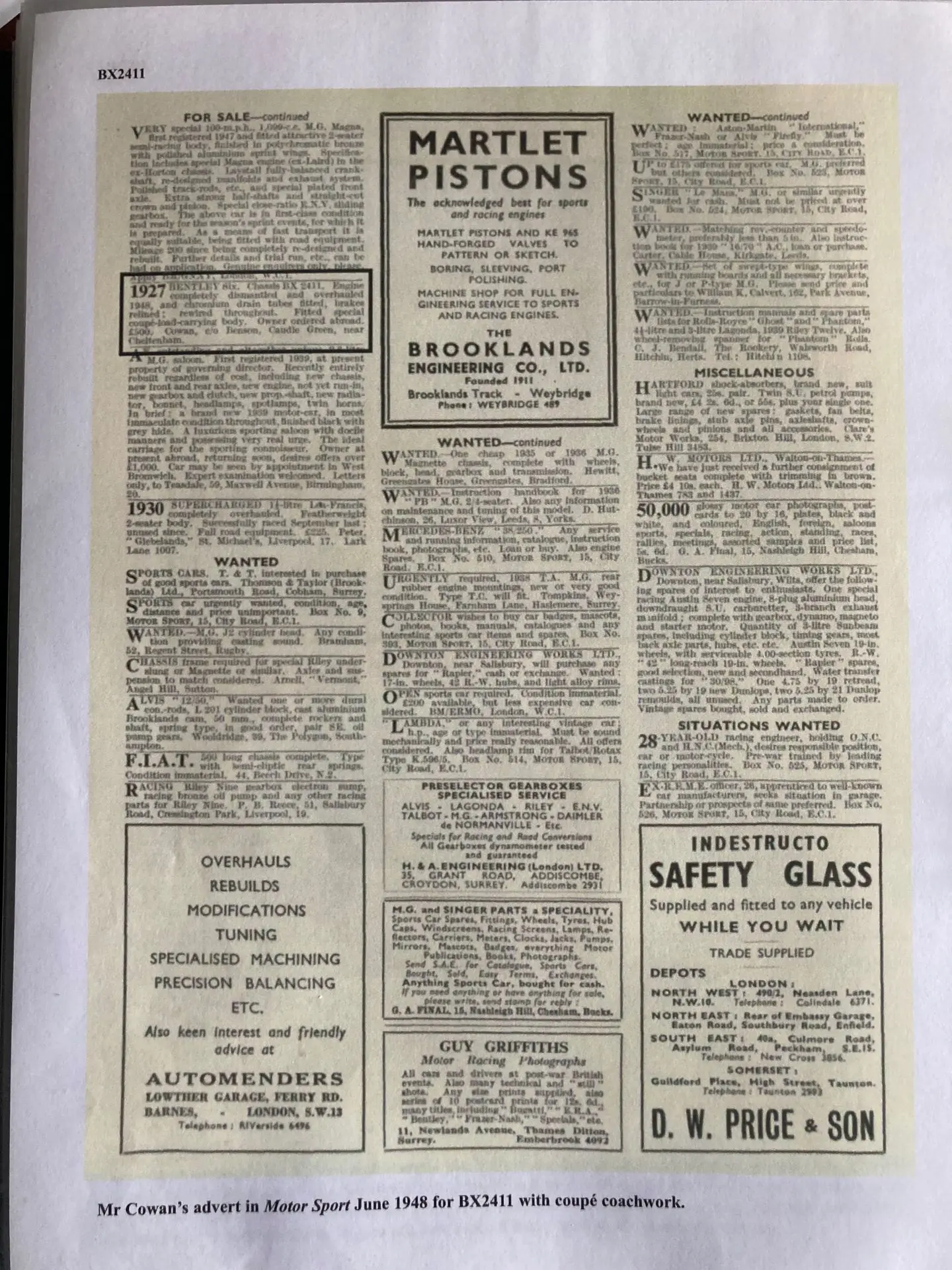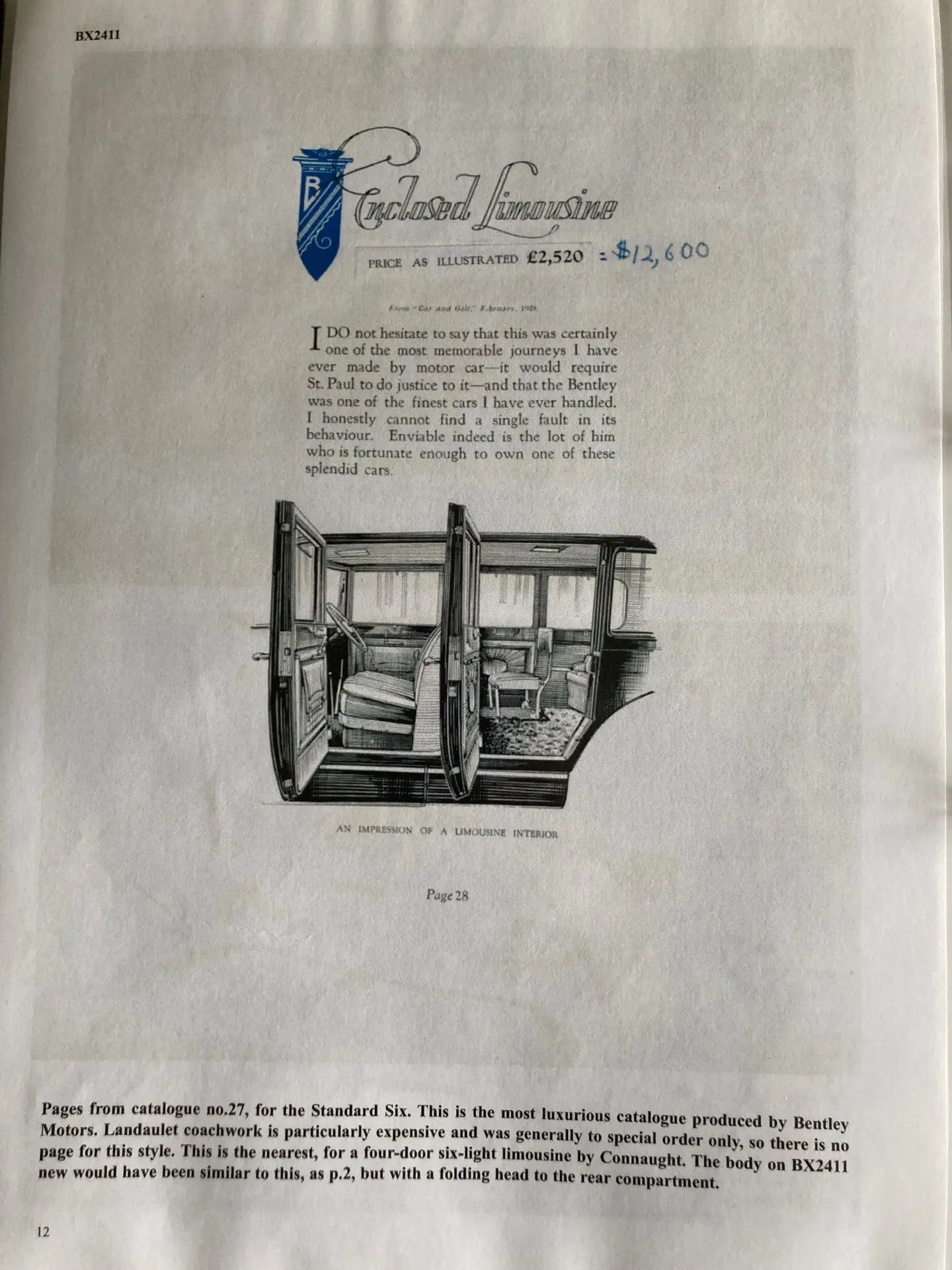 For that reason, I took a lot of solice in the 2018 Claire Hay repaort that the vendor had commissioned. Clare Hay had undertaken detailed research into YF 2186. As author of 'Bentley: The Vintage Years, her knowledge of these vehicles is unsurpassed.
